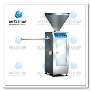 XZ-I小型自動定量灌腸機(jī)該機(jī)使用優(yōu)質(zhì)不銹鋼制造,符合食品機(jī)械的要求,只需1人操作,特別適合中小型肉食加工廠使用,以各種畜禽類肉糜為原料的香腸、火腿腸、熱狗等,可以灌制定重量單腸,也可連續(xù)灌制長腸,單腸重量在50-1000克之間,有刻度連續(xù)可調(diào),定量準(zhǔn)確,誤差<2%,料斗一次裝料57升。特點(diǎn)是連續(xù)作業(yè),加料時(shí)不需停機(jī),生產(chǎn)效率高,每小時(shí)達(dá)100-500千克,工作結(jié)束后清洗方便,整機(jī)重量僅130千克,移動方便,機(jī)腳可調(diào)。