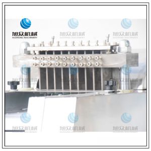 本機(jī)性價(jià)比高,模擬以手工切斷,切塊的原理采用“變速機(jī)構(gòu),自動(dòng)送料”的結(jié)構(gòu)研制而成。無損耗,采用特殊刀具刀塊,自動(dòng)加厚履帶輸送,避免了切塊的危險(xiǎn)性,使用安全性較高,切斷過程中不產(chǎn)生廢料,很大程度的保護(hù)了您的利益,節(jié)省人工,一機(jī)可抵多人工作,每小時(shí)可剁切600公斤,大大提高生產(chǎn)效率。廣泛用于大中小型食品加工廠、集體食堂、屠宰場(chǎng)、肉聯(lián)加工廠、超市等。適用于雞肉、鴨肉、魚,中小型動(dòng)物骨頭、冷凍肉、鮮肉、凍雞、雞腿等帶骨肉類,可根據(jù)需要剁塊、段、條等,大小可調(diào)。