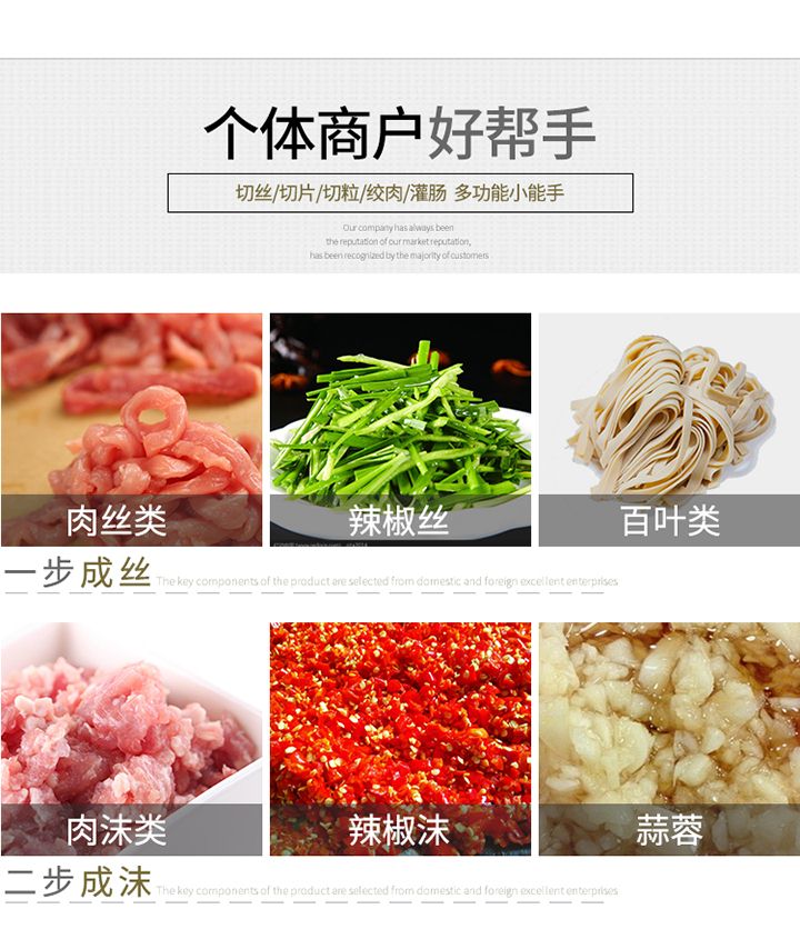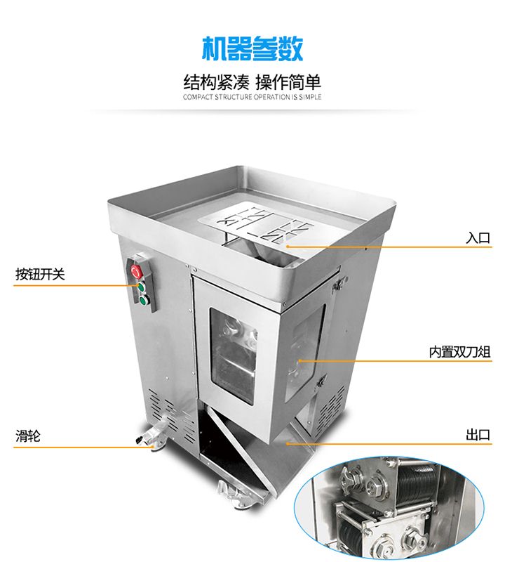 旭眾XZL一次成型切絲機是我廠精心研制出的新產(chǎn)品,該機時尚、簡潔、清洗便捷、操作安全,配有風(fēng)冷馬達,適合連續(xù)作業(yè);高質(zhì)量全不銹鋼機身。適應(yīng)于酒樓、超市、工廠、學(xué)校、賓館、食堂等各種肉類加工企業(yè)和個體用戶使用。?