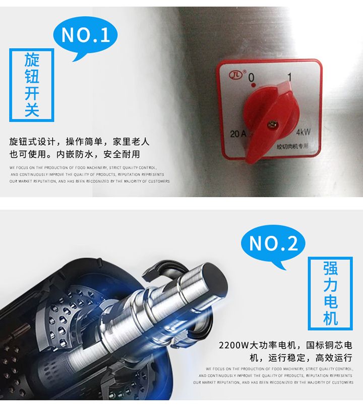 XZL-32A單絞機(jī)吸取同行之優(yōu)點(diǎn),改進(jìn)新型絞肉切肉機(jī)械,它能切豬肉、羊肉、牛肉、魚(yú)及其它各種肉類(lèi)、所切肉片厚度適中切片效率高,是餐廳、賓館、酒樓、單位食堂等絞肉切肉的理想機(jī)械,該機(jī)外形獨(dú)特,操作方便,維修簡(jiǎn)單,工作效率高,在同行業(yè)中處領(lǐng)先地位,與食物接觸部分均采用不銹鋼制造符合食品衛(wèi)生標(biāo)準(zhǔn)。