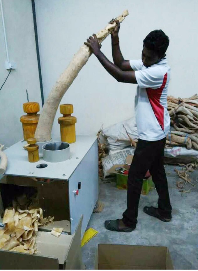 旭朗牌HK-368淮山切片機使用方法(切片過程):